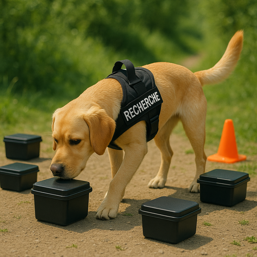 Les exercices peuvent être adaptés au niveau du chien, que ce soit pour le plaisir (cueillette de champignons) ou pour des compétitions comme le Nosework.